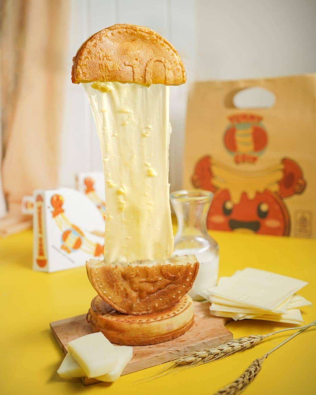 Yummy Coin Choco Pancake Ala Korea Dengan Keju Mozzarella Dan Topping Cokelat Yummy Coin sendiri merupakan produk pancake keju yang berbentuk koin Korea Selatan. Kue pancake koin lezat rasa cokelat dengan keju mozarella leleh yang menggoda lidah.